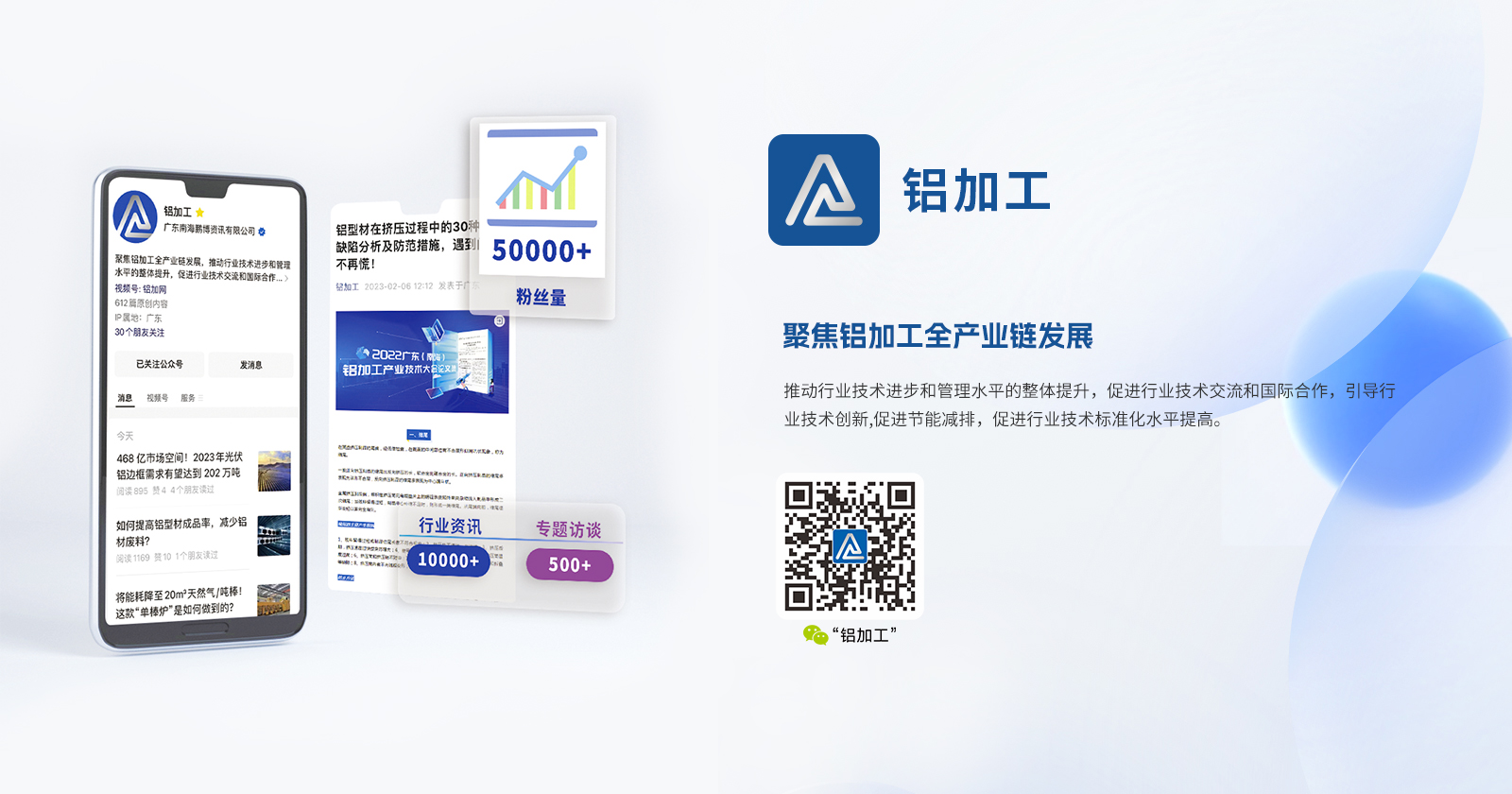 鋁加網(www.albiz.cn)是聞名鋁加工行業的垂直門戶網站,云聚鋁業新生態,構建鋁業新場景,以albiz.cn 網站為核心,以移動云端、鋁加工微信、鋁加網視頻號、《鋁型材專刊》和《鋁世界》雜志為載體,成為了鋁加工行業資訊和精準傳播的首選傳媒。鋁加網,采集和發布全行業信息資訊,提供線上展覽、在線直播、短視頻、品牌策劃、品牌運營、品牌傳播等全方位的專業服務。